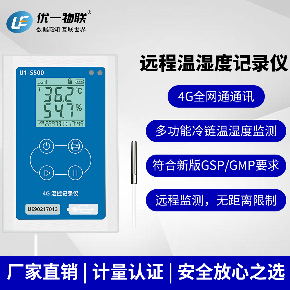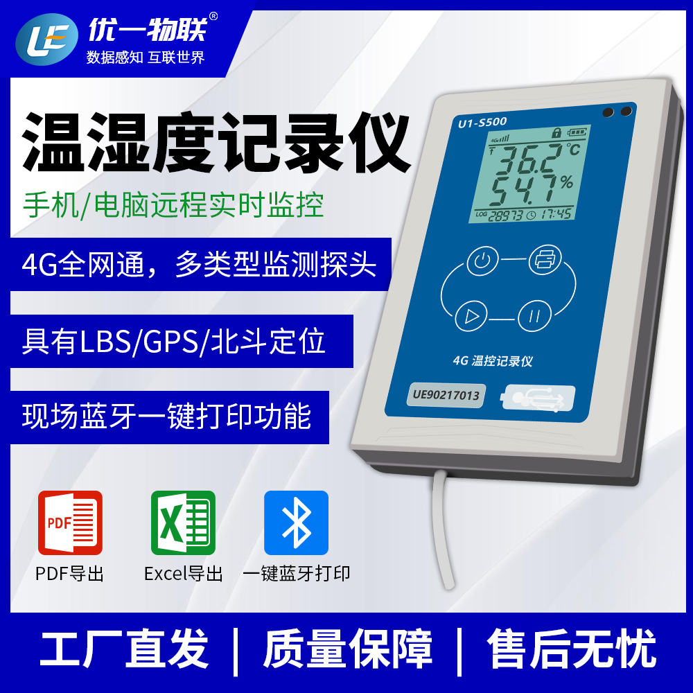 U1-S500 系列是一款應用于保溫箱、冷藏車、冰箱、倉庫等應用場景的4G溫控記錄儀,具有安裝支架,使用4G 網(wǎng)絡實時上傳數(shù)據(jù),同時具有LBS+GPS/北斗定位、現(xiàn)場藍牙打印等功能,滿足冷鏈物流操作中,現(xiàn)場交付冷鏈全過程的溫濕度數(shù)據(jù)記錄的要求。