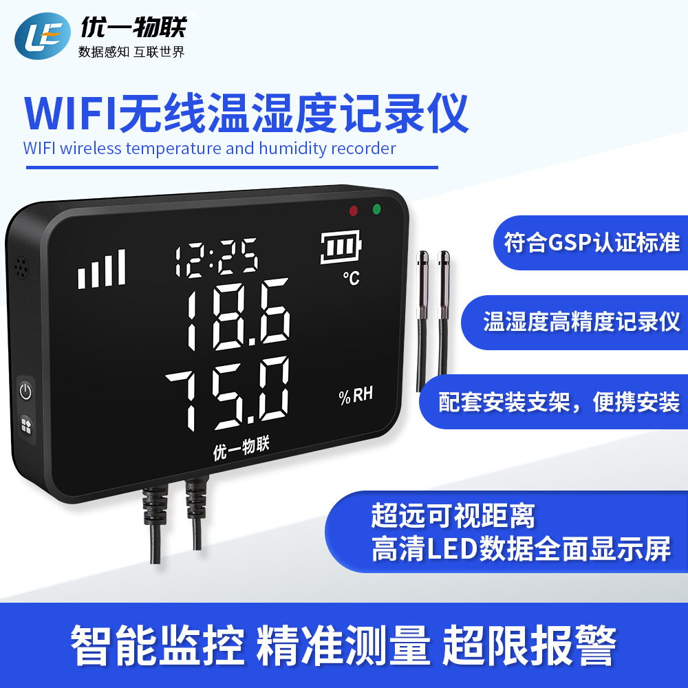 S200W WIFI產(chǎn)品系列是一款安裝在固定場(chǎng)所的無(wú)線溫濕度記錄儀,高清全屏LED顯示,可視距離遠(yuǎn),高精度,大存儲(chǔ)容量,配套支架安裝。 廣泛應(yīng)用于農(nóng)業(yè)、食品、醫(yī)藥、化工、電子、實(shí)驗(yàn)室等在線監(jiān)測(cè)系統(tǒng)中,該記錄儀采用瑞士原裝進(jìn)口一體式傳感器,內(nèi)置充電鋰電池,支持外電供電充電,超低功耗,且都支持外置可調(diào)聲光報(bào)警器。
